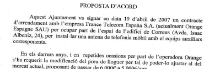La companyia de Telefonia mòbil Orange porta anys inentant negociar a la baixa el lloguer de l'edidici on hi tenen instal·lada l'antena de repetició de cobertura a Tiana. Enguany amenaça l'Ajuntament que, si el preu no es regula a la baixa, retirarà l'antena i deixarà sense cobertura els seus usuaris i usuàries al poble.